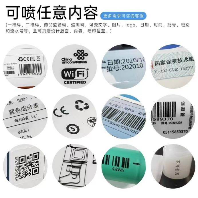實時可變數據噴印,可變二維碼,條形碼,物品外包全自動賦碼,防偽,追溯碼,一物一碼。支持數據庫,外部Excel表格數據導入,自動生成二維碼,即輸即得,一掃便知,提高生產效率,節省標簽成本。